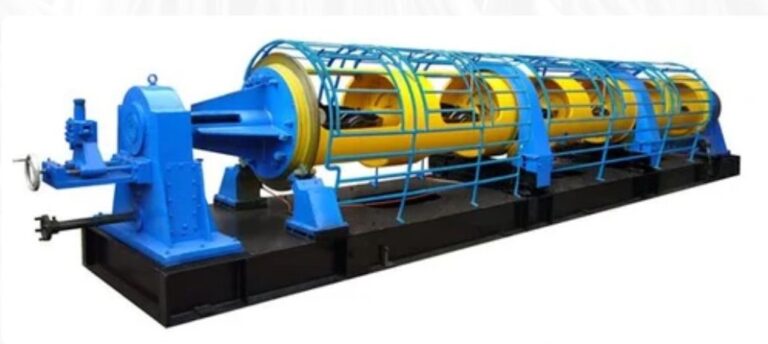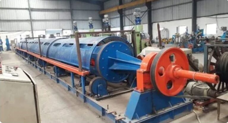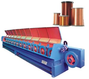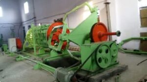 The rod breakdown machine is one of the most important facilities in the plant. It is the evaluation point of the revenue of the cable factory. This process requires heavier equipment because the rods need to be kept straight, unlike wires that can be coiled. The workpiece is fed into a die and pulled by a carriage, increasing its length and reducing its cross-section. After drawing, the rod is cut into sections.