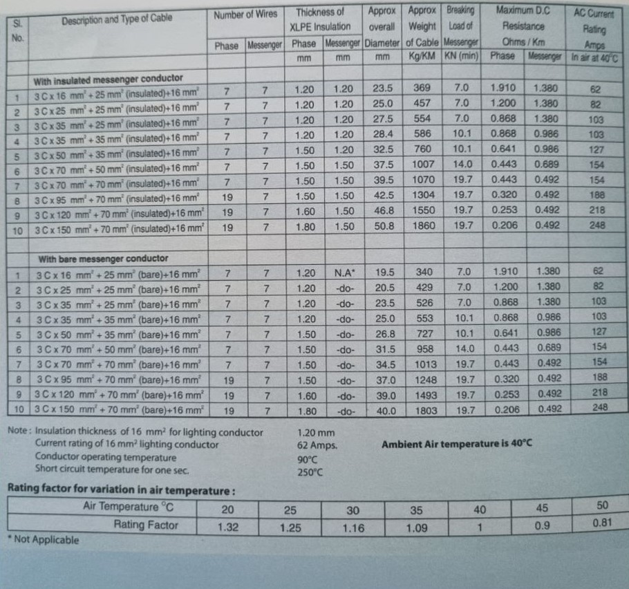 MECOCAB Aerial Bunched Cable: 1.1KV grade Stranded & Compacted Aluminium Phase Conductor and Stranded Messenger Conductor with all Aluminium Alloy, Phase Conductor is insulated with XLPE (Sloplas) Compound, Messenger is either insulated or bare. Referred specification IS: 14255-1995 up to the latest amendment.